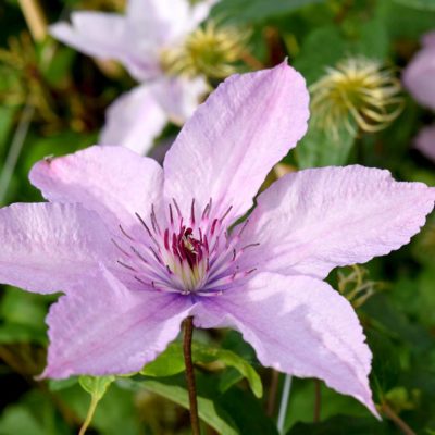Srobot Hagley Hybrid je velikocvetna in pozno cvetoča sorta, ki od junija do septembra razvija množico nežno rožnatih, zvezdastih cvetov. Cvetovi s purpurnimi prašniki, ki v premeru merijo do 15 cm, se razvijejo na poganjkih tekočega leta. V višino zraste 2 do 3 metre