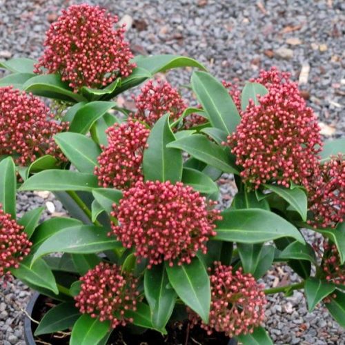 Skimija Marlot je zimzelena grmovnica. Rdeči in rdeče-roza brsti se razvijejo že pozimi in zgodaj spomladi, kar še doprinese k okrasni vrednosti rastline. Uspeva v zavetju pred močnim soncem in mrzlimi vetrovi, za svojo rast potrebuje bogata, dobro odcedna in kisla tla.